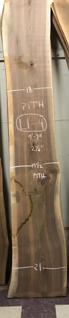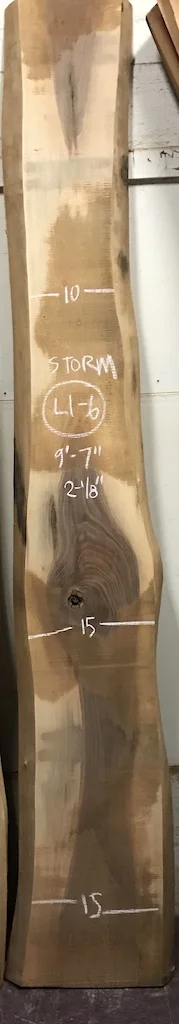 This is material is from ‘dead and down’ trees that we have sourced locally and milled in Bullville, NY. Unless noted, all material has 2 very clean natural edges, is hand-debarked at time of milling and was air dried for at least 2 years before being kiln dried. Note that sapwood has not been heavily steamed and wood tones are bright. Most slabs under 24” wide have been ‘hit-or-miss’ planed on both faces. All slab widths are taken edge-to-edge on narrower face and then averaged over the length of the board.