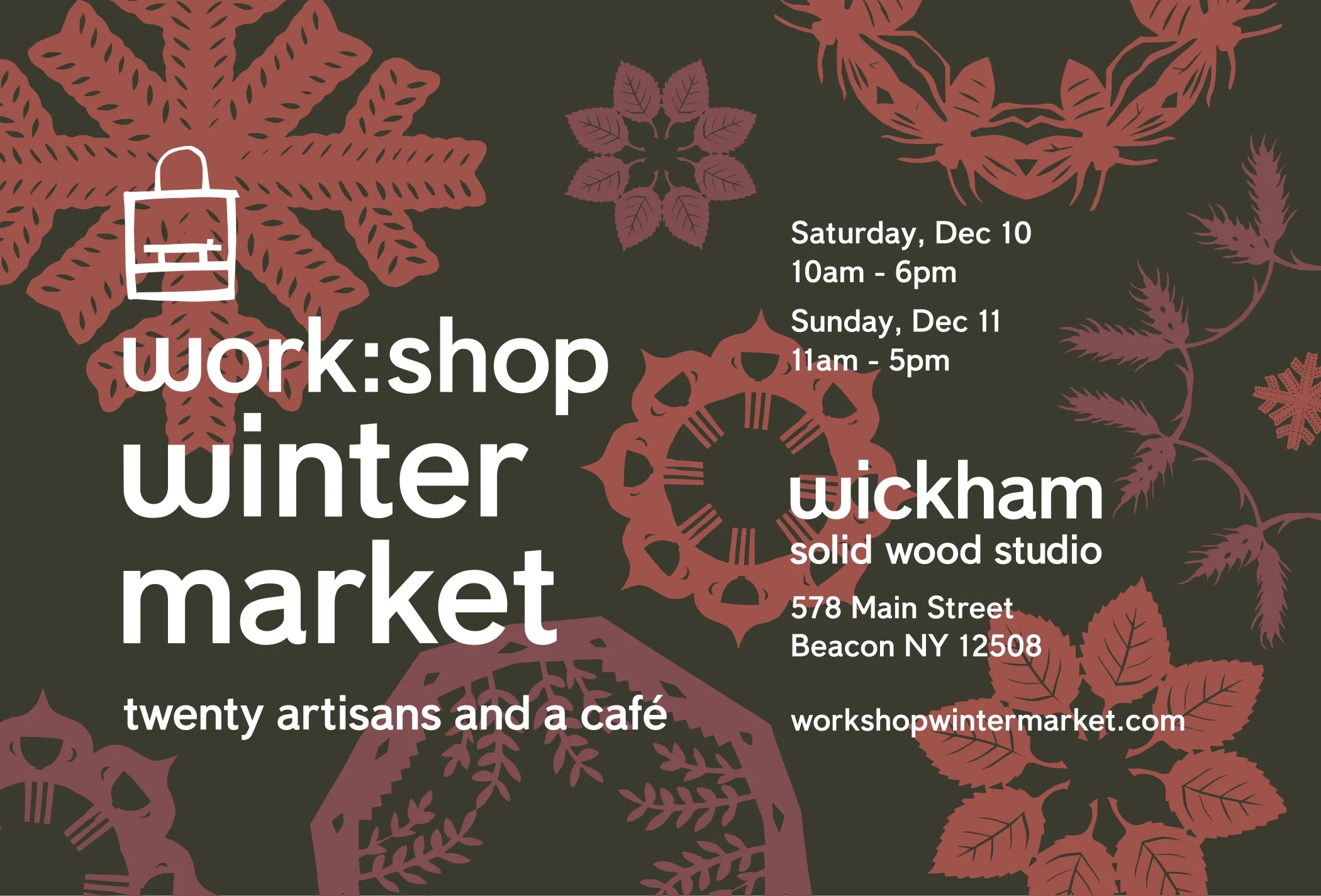 We are very excited to host the fourth annual work:shop winter market on Dec 10 & 11, 2016! This event, features 20 amazing artisans selling "museum-quality" holiday gifts in a festive setting. New this year Homespun Foods will set up "Holiday Homespun" an on-site cafe selling sweet and savory snacks and thick hot chocolate for hungry shoppers as well as packaged holiday goodies to give as gifts!